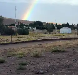 Kelenken was discovered in pyroclastic (rocks ejected by volcanic eruptions) outcrops belonging to the Collón Curá Formation in the southeastern corner of Comallo, Patagonia, an area covered in whitish tuffs. The area's stratigraphy had only been preliminarily studied at the time, and the age of the sediments had not been adequately determined, but compared with other fossil beds of the South American land mammal age and radioisotopic dating from different areas of the Collón Curá Formation, it is estimated to date to the Colloncuran age of the middle Miocene, about 15 million years ago.[3][8][17] The formation was accumulated in a broken foreland system characterized by several basins that were disconnected from each other. The formation is composed mainly of volcaniclastic limestones and sandstones that were accumulated in continental environments ranging from alluvial (deposited by running water) to lacustrine (deposited by lakes).[18]