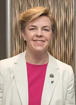 Dr. Khristinn Kellie Leitch PC OOnt FRCSC (born July 30, 1970) is a Canadian surgeon and former politician who served as the Member of Parliament for the riding of Simcoe—Grey from 2011 to 2019 as a member of the Conservative Party. She was first elected in the 2011 federal election, succeeding Member of Parliament Helena Guergis who was dismissed from the Conservative Party caucus. Following her election, Leitch was appointed as the Parliamentary Secretary to the Minister of Human Resources and Skills Development. On July 15, 2013, Prime Minister Stephen Harper named Leitch Minister of Labour and Minister for the Status of Women. She served in Cabinet until the defeat of the Conservative government in the 2015 federal election. Leitch ran in the 2017 contest for the leadership of the Conservative Party.[1] On January 23, 2018, Leitch announced that she would not be seeking re-election for the 43rd Canadian federal election and would return to being a full-time surgeon.[2]