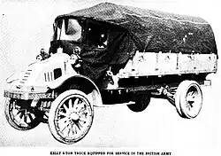 According to The Illustrated Encyclopedia of American Trucks and Commercial Vehicles by Albert Mroz, the company produced 301 of the 9,364 Liberty trucks supplied to the United States Army for World War I.[7] Another source states that the company only managed to produce 16 before the war ended and the contract was canceled.[2] It also supplied K-40s to the Canadian Army and K-35s to the French Army.[2] However, it seems they were unable to stand up to the rigors of military use.[2] (Part of a K-35 probably used by the French Army survives.[2])