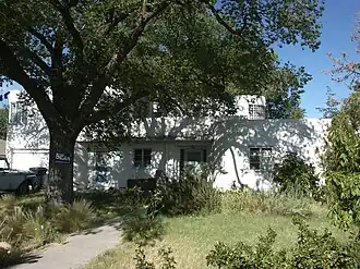 The Kelvinator House, also known as the Raabe House, is a historic house in Albuquerque, New Mexico. It was built in 1938 by Walter C. Raabe, the owner of Raabe & Mauger Hardware Company, as a showcase for the Kelvinator appliances the company distributed. It was one of over 200 "Kelvin Homes" built around the country starting in 1936. The house was designed by William E. Burk Jr., and was one of the city's earliest International Style homes along with the Lembke House. In 1976, a stylistically consistent second-story studio space was added to the building. It was added to the New Mexico State Register of Cultural Properties in 1978.[1] In 2022, it was listed as a contributing property in the Granada Heights historic district.[2]