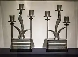 Weber then established an independent industrial design studio in Hollywood, where he also designed modern sets for films and private residences. The inclusion of his work in the 1928 'International Exposition of Art in Industry' held by New York store Macy's cemented his reputation and he went on to design many products for a wide variety of companies including Widdicomb, Berley & Gay, Friedman Silver and Lawson Time. Many of his designs, such as the copper 'Zephyr' desk clock (1933), can be classified as 'Streamline Moderne', which was a popular style in contemporary architecture.