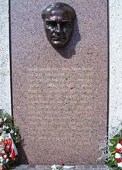 Centrally located in the wall is a bronze likeness of Atatürk – a gift of the Turkish government by Turkish sculptor Hüseyin Gezer.[2] The inscription, attributed to Atatürk, pays tribute to his former foes and reflects his understanding of the cost of war:[1]