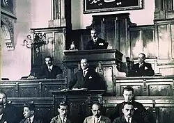 Kemalist historiography (Turkish: Kemalist tarihyazımı) is a narrative of history mainly based on a six-day speech delivered by Mustafa Kemal [Atatürk][a] in 1927,[1][2] promoted by the political ideology of Kemalism, and influenced by Atatürk's cult of personality.[3] It asserts that the Republic of Turkey represented a clean break with the Ottoman Empire, and that the Republican People's Party did not succeed the Committee of Union and Progress (CUP).