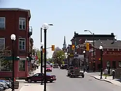 Kemptville is the largest community in North Grenville, with about 69% of North Grenville's population.[1] Five elementary schools are located in the town — Holy Cross Catholic School, Kemptville Public School, South Branch Elementary School, Académie Catholique Notre Dame and Rivière Rideau— two high schools — North Grenville District High School and St. Michael Catholic High School — three parks, and two hotels. The residential area is generally located in the south and east parts of the community. The main streets are Rideau, Prescott, Clothier and Van Buren streets. A creek named Kemptville Creek divides Kemptville in the southeast, where the least part of Kemptville is found. The creek begins southwest of Kemptville and empties 4 km (2.5 mi) NE into the Rideau River. Much of Kemptville is forested, especially east and north of the community. Farmland covers the rest of the area, especially the west and the southern part of the community, with some exceptions. There are some homes lying next to the farmland.