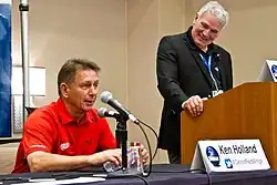 Kenneth Mark Holland (born November 10, 1955) is a Canadian ice hockey executive and former goaltender, and is currently serving as the vice president and general manager of the Los Angeles Kings in the National Hockey League. Holland most notably served as the executive vice president and general manager of the Detroit Red Wings of the National Hockey League from 1997 to 2019, winning four Stanley Cup championships. He also served as president of hockey operations and general manager of the Edmonton Oilers from 2019 to 2024, with the Oilers reaching the 2024 Stanley Cup Final. In 2009, Holland was listed as second-best overall on Sports Illustrated's list of the top sports executives of the 2000s.[1] As a goaltender, Holland was drafted in the 12th round, 188th overall by the Toronto Maple Leafs in the 1975 NHL Entry Draft. He played four NHL games with the Hartford Whalers and the Red Wings between 1980 and 1984.[2]