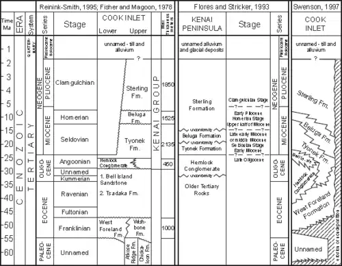 - ^ Dickinson, Kendall A. (1995). "Geology, Geochemistry, and Uranium Favorability of the Tertiary Kenai Group in the Susitna Lowlands at the Northern End of Cook Inlet Basin, Alaska" (PDF). US Geological Survey Bulletin. 2098: A3. Retrieved 5 August 2011.