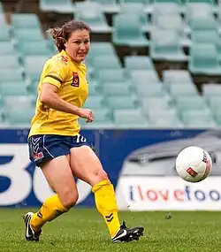 She joined Los Angeles Sol in the WPS in 2009, but only played one game for the club before she was traded to Saint Louis Athletica.[7] She played seventeen games for Athletica, and gave multiple assists in helping the team go from the bottom of the ladder to second place and the playoff semifinal. Athletica then loaned her to the Central Coast Mariners, where she scored four goals in ten games as the Mariners finished second in the league.[8]