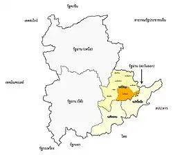 Kengtung Township (Shan: ၸႄႈဝဵင်းၵဵင်းတုင်, Burmese: ကျိုင်းတုံမြို့နယ်; also spelled Kyaingtong, Kengtong, Thai: เมืองเชียงตุง or Mueang Chiang Tung) is a township of Kengtung District in the Shan State[2] of Myanmar. The principal town is Kengtung. It lies almost entirely east of the Salween River and its area is over 12,000 square miles (31,000 km2). It is bounded on the north by the states of Mang Lon, Mong Lem and Keng Hung (Hsip Hsawng Pannh); east by the Mekong River, south by the Siamese Shan States, and west in a general way by the Salween River,[2] though it overlaps it in some places. The state is known to the Chinese as Mhng Khng, and was frequently called by the Burmese the 32 cities of the Gn (HkOn). The classical name of the state is Khemarata or Khemarata Tungkapuri.[2]