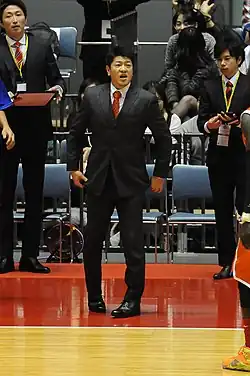 Kenichi Sako (佐古 賢一, born 17 July 1970) is a Japanese former basketball player and current coach.[1] Nicknamed "Mr. Basketball", Sako played as point guard and is widely regarded as one of the best Japanese players in history,[2] having won twelve Emperor's Cup titles and nine JBL championships. Representing the Japan national team, Sako played at one FIBA World Cup in 1998, and won one silver and one bronze medal at the FIBA Asia Cup. He was enshrined into the FIBA Hall of Fame in 2020, becoming the first Japanese player to be inducted.[3]