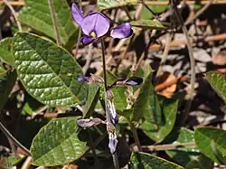 Kennedia procurrens, commonly known as the purple running pea,[2] is a species of flowering plant in the family Fabaceae and is endemic to eastern Australia. It is a prostrate or climbing herb with trifoliate leaves and pale red to mauve or violet flowers.