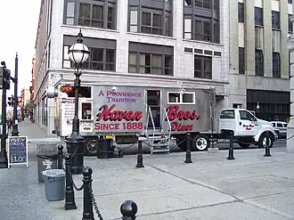 Haven Brothers Diner (located next to City Hall during the evenings hours), founded in 1888, is one of the oldest restaurants on wheels in America when it was launched as a horse drawn lunch wagon.[33]