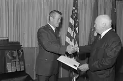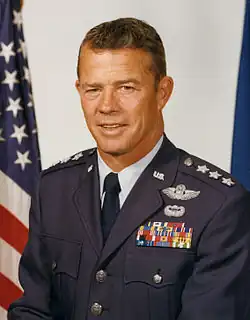 His military decorations include the Air Force Distinguished Service Medal with two oak leaf clusters,[3] the Legion of Merit with oak leaf cluster, the Air Medal, and the Air Force Commendation Medal with two oak leaf clusters.