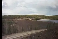 The Kenney Dam is a rock-fill embankment dam on the Nechako River in northwestern British Columbia, built in the early 1950s. The impoundment of water behind the dam forms the Nechako Reservoir,[1] which is also commonly known as the Ootsa Lake Reservoir. The dam was constructed to power an aluminum smelter in Kitimat, British Columbia by Alcan (now Rio Tinto Alcan), although in the late 1980s the company increased their economic activity by selling excess electricity across North America.[2]: 128 The development of the dam caused various environmental problems along with the displacement of the Cheslatta T'En First Nation, whose traditional land was flooded.[3]
