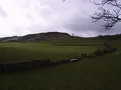 Historically, the Briggs and Philipson (Phillipson) families dominated this area of northwest Kendal, which was under the parish of Kirkbie.[2] A Christofer Philipson of Hollin Hall, near Crook (several miles to the northwest of Kentrigg), is documented in a will dated 20 May 1566 to have given Rolland Phillipson and his male heirs "lands I purchased of Mr. Heskett" in this area.[3] Around 1581, the son of Robert Philipson married Elizabeth, daughter of Robert Briggs of Helsfell Hall and subsequently had five sons and two daughters.[3] During the English Civil War in the 1640s, the Briggs family, who were Parliamentarians (Colonel Edward Briggs was a magistrate[4]), clashed with their cousins, The Philipsons, who were strict Royalists.[5][6] During the Siege of Carlisle, Colonel Briggs besieged Robert Philipson's Belle Isle on Windermere for eight to ten days.[2] Robert Philipson is documented as having searched Kendal Church for his cousin Edward Briggs while he was at prayers on a Sunday morning with "the object of killing his cousin" in retaliation.[7][8] The dominance of the area by the Briggs family ended after the civil war when the Philipsons stripped the family of their possessions, Robert Philipson taking ownership of the Colonel Brigg's seat at Helsfell Hall.[9] The hall is mentioned in Cornelia Nicholson's The Annals of Kendal who documents that the seat of the Briggs family was "once a place of considerable importance."[9]