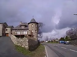 109 Burneside Road, also known as Aikrigg End, is a Grade II listed building. It is dated to the 18th and early 19th century. The roof is hipped with a graduated slate roof and gabled porch on the south side. It is 2 storeys high, with 3 bays and a panelled door.[17] The area also contains numerous cottages which are let out to tourists, such as the Old Woolyard and Low Plumgarths Farmhouse, about a mile from Kentrigg.[18] Architect W. A. Nelson designed two of the houses along Burneside Road.[19] Also of note is Hallgarth Cottage and Helsfell Hall off the A5264 road beyond the Hallgarth estate to the west of Kentrigg, Cherry Tree Cottage, Elm Court, and The Oddfellows Arms pub.[1][20] The old 16th century Helsfell Hall is located in a field high above the A5264, becoming a Grade II listed building in 1984.[9]