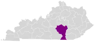 Kentucky's 15th Senatorial district is one of 38 districts in the Kentucky Senate. Located in the southern part of the state, it comprises the counties of Clinton, Cumberland, Pulaski, Russell, and Wayne. It has been represented by Rick Girdler (R–Somerset) since 2017.[1] As of 2023, the district had a population of 118,400.[2]