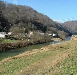 The Kentucky River has three major forks: the North, Middle, and South Forks.[3] The Middle and North Forks join near Beattyville to form the Kentucky River, which is joined in turn just downstream of Beattyville by the South Fork.[3] The area between the confluence of the North and Middle Forks and where the South Fork joins is known locally as The Three Forks Country.[4] Between them, the three forks drain nearly 3⁄5 of the 4,423-square-mile (114.6 Ma) central portion of the Eastern Kentucky Coalfield area.[3][5]