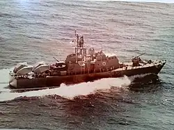 These missile boats were delivered in 1976 along with KNS Mamba, and were built by Brooke Marine.[14] KNS Madaraka was decommissioned in 2000, and KNS Jamhuri and KNS Harambee in 2002.[10][15]