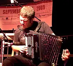 Kepa Junkera Urraza (born 1965 in Bilbao, Euskadi, Spain) is a Basque musician and composer. A master of the trikitixa, the diatonic accordion, he has recorded more than 10 albums. [1] Junkera won the Latin Grammy Award for Best Folk Album in 2004 for his album K.[2]