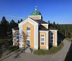 The Kerimäki Church (Finnish: Kerimäen kirkko, Swedish: Kerimäki kyrka) in Kerimäki, Finland, is the largest wooden church in the world.[1] However, it is not the tallest; Săpânța-Peri Monastery church in Romania, at 78 metres (256 ft), Ascension Cathedral in Kazakhstan, at 56 metres (184 ft) meters, and St. George's Cathedral in Guyana, at 43.5 metres (143 ft), are taller.