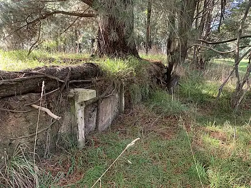 The station closed at the same time as the line in 1978. The retaining wall of the platform is still in fairly good condition and the level crossing on the nearby main road is still visible. The Kernot Railway Station site is Crown Allotment 2058 in the parish of Corinella and is allocated for future use as a reserve and part of the Nyora Wonthaggi Rail Trail.[22]