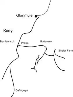 The railway ran from the Cambrian Railways Kerry railway station at Glanmule to the Brynllywarch estate owned by Christopher Naylor. The line served the timber forests on the estate, as well as a slab quarry and general estate traffic. It was worked by the Bagnall locomotive Excelsior.
