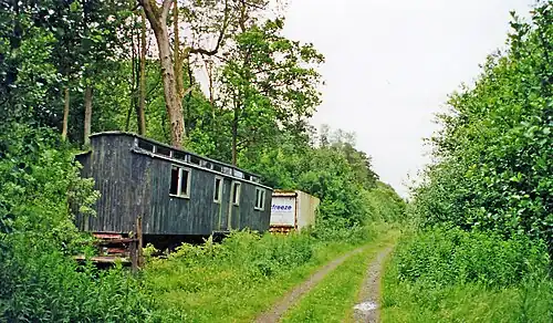 ![]() The site of the station, looking south towards Carlisle, in 2000 | |||||