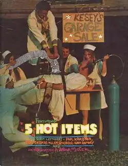 Kesey's Garage Sale is a collection of essays and other writings by Ken Kesey, published in 1973.[1] The book features the play "Over the Border" which is based on the time Kesey spent hiding in Mexico from drug charges in the United States. It is illustrated by the cartoonist and Merry Prankster Paul Foster, and also includes contributions from Paul Krassner, Neal Cassady, Allen Ginsberg, Hugh Romney and Arthur Miller.[1][2] Much of the material had previously appeared elsewhere.[1]