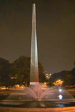 The Kessler Campanile is an 80-foot-tall (24 m) campanile located at the Georgia Institute of Technology.[1][2] Designed by artist Richard Hill,[3] a University of Georgia graduate,[4] it was originally constructed for the 1996 Olympic Games.[5] It is named after Richard C. Kessler, Tech graduate and former head of Days Inns. It is frequently referred to as "The Campanile" or "The Shaft" (a tongue-in-cheek reference to student opinion on the school's difficult curriculum). The amphitheater and the Campanile reopened in 2011 after a two-year-long reconstruction as part of the ongoing Clough Undergraduate Learning Commons construction.[6]