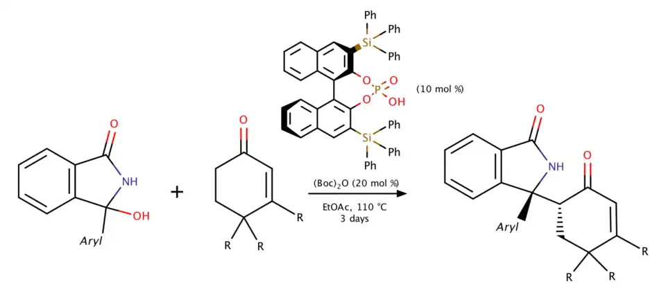 - ^ Reddy, K. Nagarjuna; Rao, M. V. Krishna; Sridhar, B.; Subba Reddy, B. V. (2019-08-07). "BINOL Phosphoric Acid‐Catalyzed Asymmetric Mannich Reaction of Cyclic N‐Acyl Ketimines with Cyclic Enones". Chemistry: An Asian Journal. 14 (17): 2958–2965. doi:10.1002/asia.201900556. ISSN 1861-4728. PMID 31241858. S2CID 195658849.