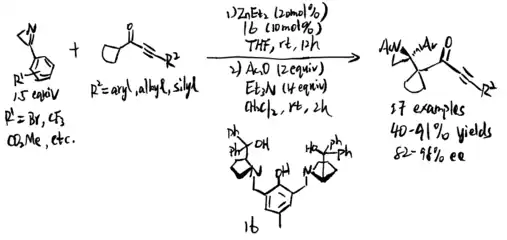 - ^ Trost, Barry M.; Zhu, Chuanle (2020-12-03). "Zn-ProPhenol Catalyzed Enantioselective Mannich Reaction of 2H-Azirines with Alkynyl Ketones". Organic Letters. 22 (24): 9683–9687. doi:10.1021/acs.orglett.0c03737. ISSN 1523-7060. PMID 33269592. S2CID 227258883.