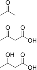 | Ketone bodies: acetone, acetoacetic acid, and beta-hydroxybutyric acid | |