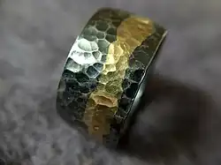 ![]() Silver ring gilded with 0,4 mm gold with the keum-boo technique, hammered and blackened | |