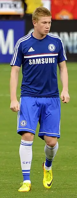 On 31 January 2012, on the winter transfer deadline day, Premier League club Chelsea and Genk announced the permanent signing of De Bruyne, with the fee rumoured to be in the region of £7 million.[15] He signed a five-and-a-half-year contract at Stamford Bridge, but would stay at Genk for the remainder of the 2011–12 season. De Bruyne told the club website, "To come to a team like Chelsea is a dream but now I have to work hard to achieve the level that's necessary."[16][17] On 18 July 2012, De Bruyne made his debut for Chelsea in a friendly match against Major League Soccer (MLS) side Seattle Sounders FC in a 4–2 win. De Bruyne also played the first half against Ligue 1 giants Paris Saint-Germain at Yankee Stadium, New York City.