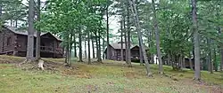 Clearing of the forest cover began in the winter of 1933/34, and the stumps were cleared as the weather let up. The logs from the property were used construct the lodge.[3] By the end of 1934, the lodge was nearly completed and the first nine holes of the golf course were cleared and seeded. (A second planned nine holes was never completed.)[3] In 1935, another project to build 20 cabins was approved by the Works Progress Administration, which were completed during the next few years. Four additional cottages were built in 1947/48 using profits from the operation of the lodge.[3]