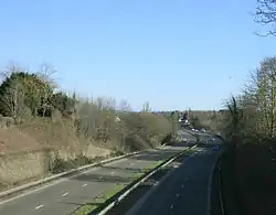 The A4 trunk road used to run through the town, but much of this traffic is now carried on the bypass, which was constructed in 1964.[74] The bypass runs from Saltford, a village which adjoins Keynsham, to Brislington in Bristol. Keynsham is about 10 miles (16 km) from junction 1 of the M32 via the Avon Ring Road A4174 and provides a fast route to the M4 and M5.