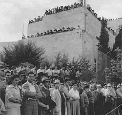- ^ Larry Collins, Dominique Lapierre, O Jerusalem,(1972) Granada Books 1982 p.216.'In 1942, by a complex legal manoeuvre, the Fund circumvented the restrictions on Jewish land purchases set out by the British government's 1939 White Paper and acquired the land of a nearby German monastery whose monks had been interned as enemy aliens by the British. On an April night one year later, three women and ten men slipped through the darkness to lay claim to the monastery and officially establish the settlement of Kfar Etzion.'