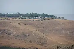 Later an Arab village, Kafr Harib, existed at the south edge of the current settlement's built-up area. Kafr Harib appeared in Ottoman tax registers in 1596 as a village in the Nahiya of Jawlan Garbi in the Qada of Hawran. It had a population of 5 Muslim households and 7 bachelors and paid taxes on wheat, barley and goats or beehives.[5] In 1888, Gottlieb Schumacher described it as a village of 70 stone and mud huts with about 200 "affable and hospitable" inhabitants, who ran an excellent bee industry in addition to cultivation.[6]