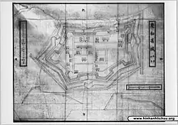When Jean-Louis Taberd published the map of Annam in 1838, the province was named "Bình Hòa Trấn," with "Trấn" meaning "Department" or province.[6] In 1832, under the rule of Emperor Minh Mạng, this area was renamed Khánh Hòa and was divided into two districts, Phủ Diên Khánh and Phủ Ninh Hòa, which between them had a total of four counties: Phước Điền and Vĩnh Xương counties; and Quảng Phước and Tân Định counties, respectively.