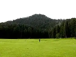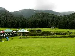 Khajjiar is a hill station near the town of Chamba in Chamba district of Himachal Pradesh, India. Located approximately 24 kilometres (15 mi) from Dalhousie, it lies on a small plateau about 2,000 meters (6,500 feet) above sea level in the foothills of the Dhauladhar ranges in the Western Himalayas. It is also part of the Kalatop Khajjiar Sanctuary.[2]