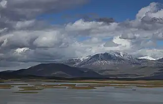 Khanchali Lake (Georgian: ხანჩალი) is a tectonic-volcanic lake[1] in Ninotsminda Municipality, Samtskhe–Javakheti region of Georgia.[2] Located in the central part of the Javakheti Plateau, at 1931 m above sea level. The area of its surface is 5 km2. The maximum depth of the lake is 1.4 m. The lake is fed by water from snow, rainfall and underground waters. Water levels are higher during spring and lower at the end of february.[3]