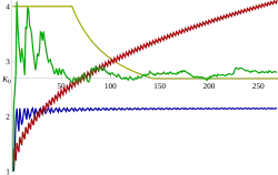 Many well known numbers, such as π, the Euler–Mascheroni constant γ, and Khinchin's constant itself, based on numerical evidence,[4][5][2] are thought to be among the numbers for which the limit converges to Khinchin's constant. However, none of these limits have been rigorously established. In fact, it has not been proven for any real number, which was not specifically constructed for that exact purpose.[6]