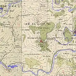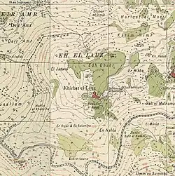 ![]() Map of Khirbat Al-Lawz-area, 1870s | |