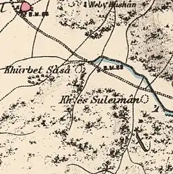 In 1881, the PEF's Survey of Western Palestine found at Kh. Sasa: "caves and foundations".[4]