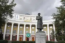 Although he relinquished leadership of the MPRP, Choibalsan continued to be the predominant force in Mongolian politics and pushed through reforms of the Mongolian constitution more in line with the 1936 USSR Constitution[44] that effectively ended the influence and power of Buddhist church.[42] Between 1941 and 1946 the country adopted Cyrillic script in place of the traditional Mongolian script. On 5 October 1942 Choibalsan University in Ulaanbaatar opened[45] financed largely by the Soviets and with courses taught in Russian.