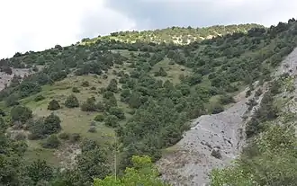 At the upper part of semi-desert zone there are rocky and stony slopes consisting of sedimentary limestone and chalky clay. These mountainous slopes, destroyed by wind erosion, are called "skeletal mountains". They are the habitat of dry Mediterranean type of vegetation, which is a gem of the reserve. The southern mountainous slopes covered by rocky massifs at the altitudes of 1,400–1,700 m (4,600–5,600 ft) are covered by Armenian Iranian phrygana (which means "dry" in Greek) with its many varieties.