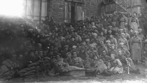 Zhurari's Whites in Tiraspol attempted to provide assistance to the rebels, but moved in too late. In early February, they reportedly acted as negotiators between armed Bolsheviks, led by the Bessarabian Grigory Kotovsky, and the UNR authorities, allowing the latter to withdraw peacefully from Tiraspol.[151] Kotovsky was then pushed out by French troops of the 58th Infantry Regiment, and found himself crossing into Bessarabia, where he managed to chase Romanian soldiers out of Tighina.[152] A French–Romanian division-strength force, assisted by the Polish Blue Army, stepped in to repel Kotovsky's partisans, and reoccupied Tiraspol. Zhurari's men declared their neutrality, but nevertheless found themselves labeled as enemy troops by the French army command; they then joined the intervention forces and participated in political repression, executing among others the father of Bolshevik leader Pavel Tcacenco.[153]