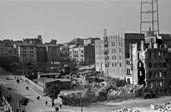 Upon regaining control of the city, Soviet authorities conducted a structural assessment of the war-damaged buildings. Soviet authorities assessed more than 300 destroyed buildings in Kyiv's city center. Experts concluded that approximately 200 of those could be salvaged and restored. Reconstruction efforts began almost immediately, with Khreshchatyk identified as a priority. Reconstruction efforts started with Khreshchatyk and central administrative areas.[1] In 1944, the Soviet government imported over 7,000 captured German soldiers to help rebuild the city, and stationed them primarily at the former Syrets concentration camp.[1]