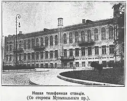 In 1912, construction of a new building began under the supervision of architect Oleksandr Kobelev. The original Golovynsky Palace was dismantled, and in its place, a four-story building was erected deeper within the courtyard. This new structure housed both operational facilities and an expanded telephone exchange.[1]