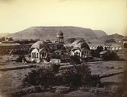 Khuldabad's historical and religious significance dates back to the 14th century, when Muhammad bin Tughluq of the Delhi Sultanate shifted the population of Delhi to Daulatabad in the Deccan. A significant portion of the Muslim elite that migrated consisted of Sufis, many of whom settled in the neighbouring town of Rauza (the older name of Khuldabad). Some of these initial migrants included Sufi saints Zar Zari Zar Baksh and Burhanuddin Gharib.[3] As the place of burial for many of these saints, the town acquired a sacred character as a centre of Chishti Sufism.[4][5]